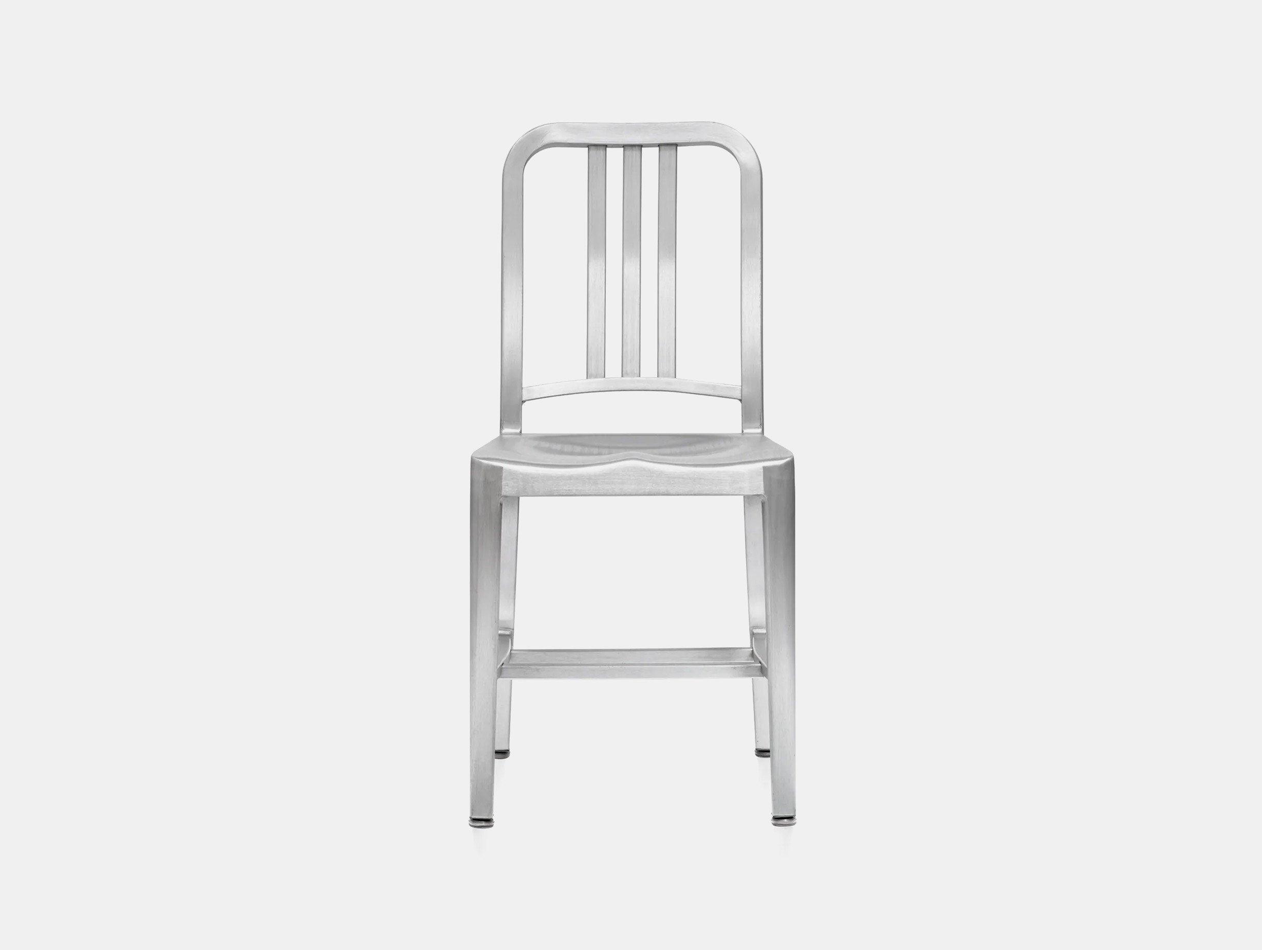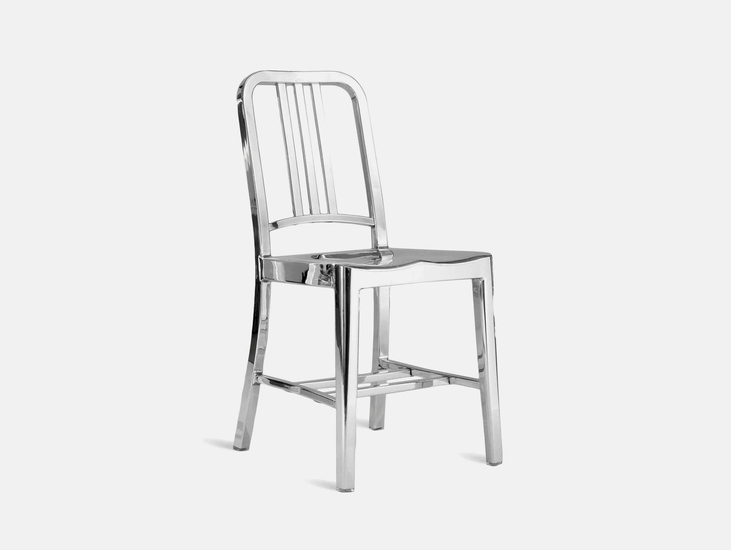 Lightweight and durable, the US Navy originally commissioned the chair to be made for submarines and sailors . Created using Emeco's unique 77-step system, the production process of 1006 Navy Chair includes heat-treating, anodizing, and brushing to ensure that each chair is made with the highest resilience and strength.