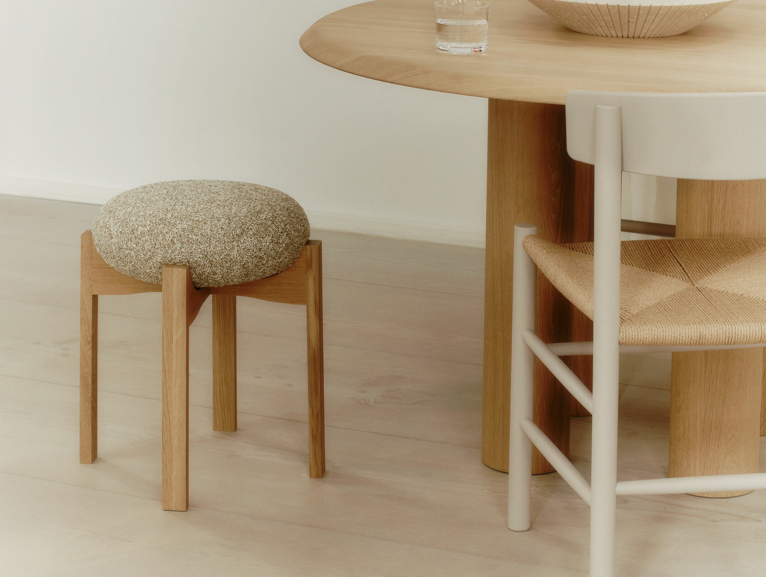 The Fredericia Pioneer Stool by Maria Bruun combines functionality with Bruun’s signature sculptural minimalism.