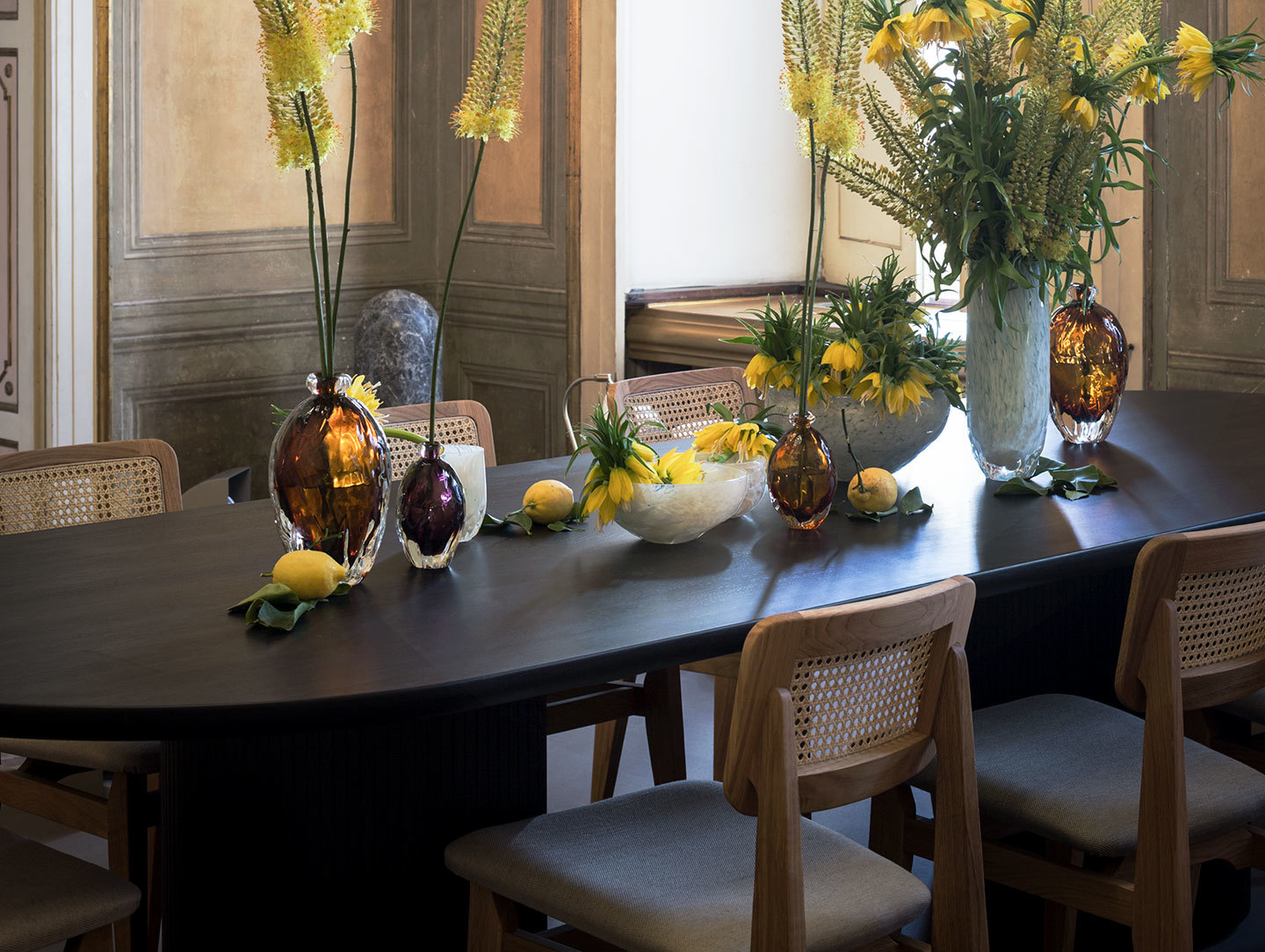 Merging art and industry, the chair boasts a strong yet elegant form, with substantial legs that bring a sturdiness. Its contrasting woven cane seat gives the C-Chair its sense of lightness, and the use of natural materials offer an inviting warmth.