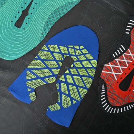 - 一片式鞋面切割:確認完成布料的尺寸,並依照客戶鞋面版型進行精密雷射切割。