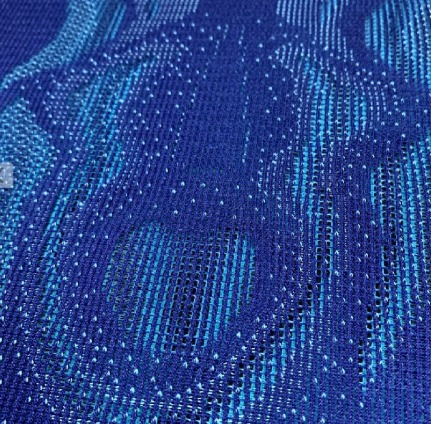 - 具有仿舊外觀的漸漬系列,透過一次性織造提花技術在布面同時呈現麻花、暈染、漸變效果,並延續經編特有的開孔結構達到良好透氣性
