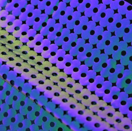 高亮度變色龍反光膜可沖孔且造型變化多,不同角度反光下,會呈現出炫麗的七彩反射光澤。