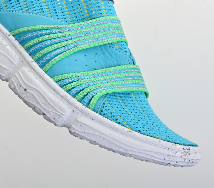 在鞋類方面可以運用在腳背處或後跟處,作為束緊固定的功能。由一到多的散射狀織帶能夠更加貼合腳型,也能夠做出各種不同變化的造型。