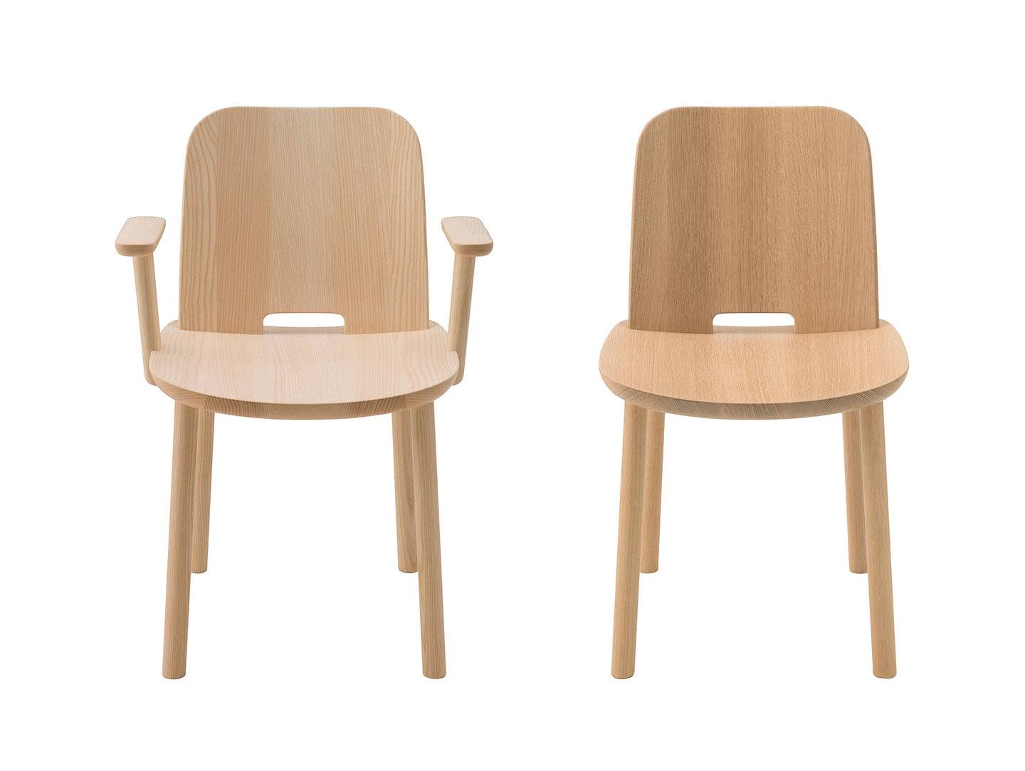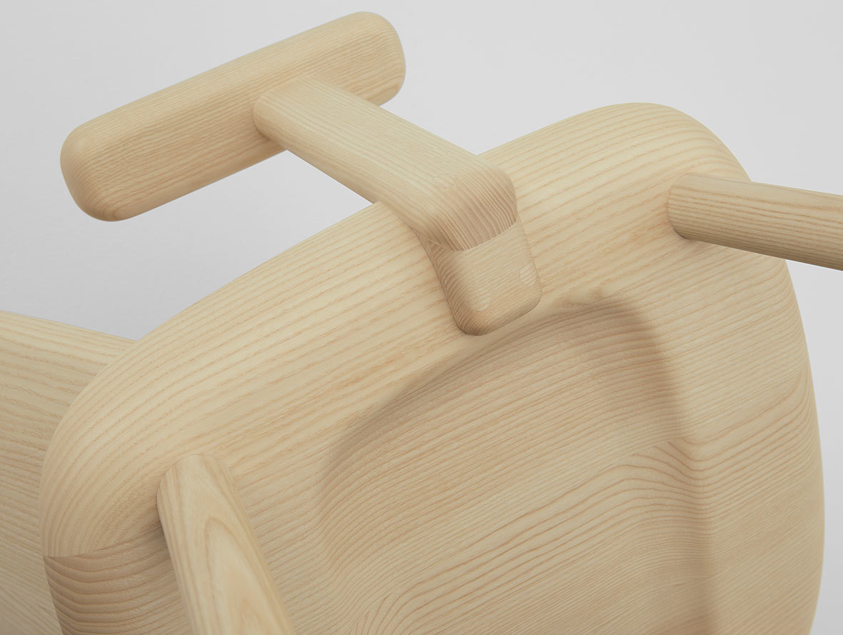Designer Jasper Morrison shares, "The Fugu dining chair extends the family from lounge chairs to the table. The goal has been the same, to achieve a level of comfort with solid wood seat and back so that no upholstery is needed, maintaining the pure lines and expression of a single material purposefully arranged."